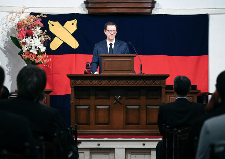 11月6日、三田演説館にて、エコールサントラルナント名誉教授のフアド・ベニス氏に対する慶應義塾大学名誉博士称号授与式が行われた。同氏は理工学分野において長年慶應義塾大学との学術連携に尽力するとともに、ロボティクスや学際的最適化の分野においても産業界との連携を重視し、学術知の実用化に貢献した。授与式ではフアド・ベニス氏による講演も行われた。
