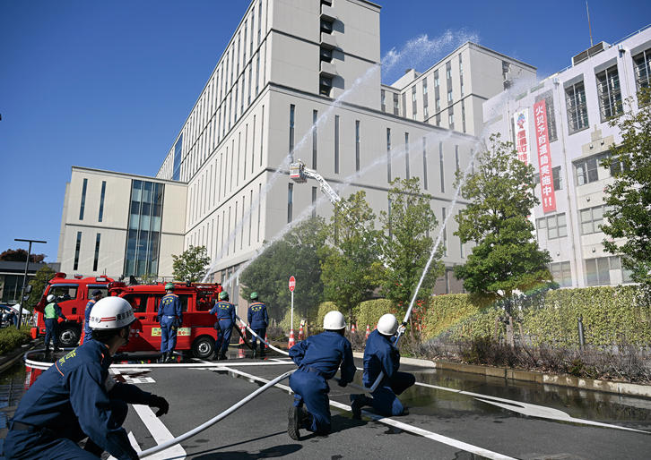 11月15日、慶應義塾大学病院正面駐車場にて、「信濃町地域防災コミュニティー防災訓練」が行われた。四谷消防署の協力の下、自衛消防隊による初動訓練および医療救護活動・一斉放水訓練の他、個別訓練や消防体験等が行われ、信濃町地域の事業者約280名が参加した。