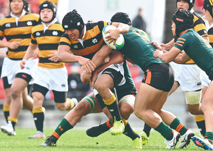 1回戦対青森山田高校戦では戦術が噛み合い、自分たちの思い通りのラグビーを展開することができ、48対12で勝利することができました。一転して2回戦対鹿児島実業戦は苦しい局面が続き、なかなか自分たちの形を作らせてもらえない時間が長く続きましたが、全員で我慢し続け、最後は何とか自分たちの得意な形へと持ち込んで勝ち切ったその粘り強さこそ、この1カ月半の成長を象徴していました(31対17で勝利)。